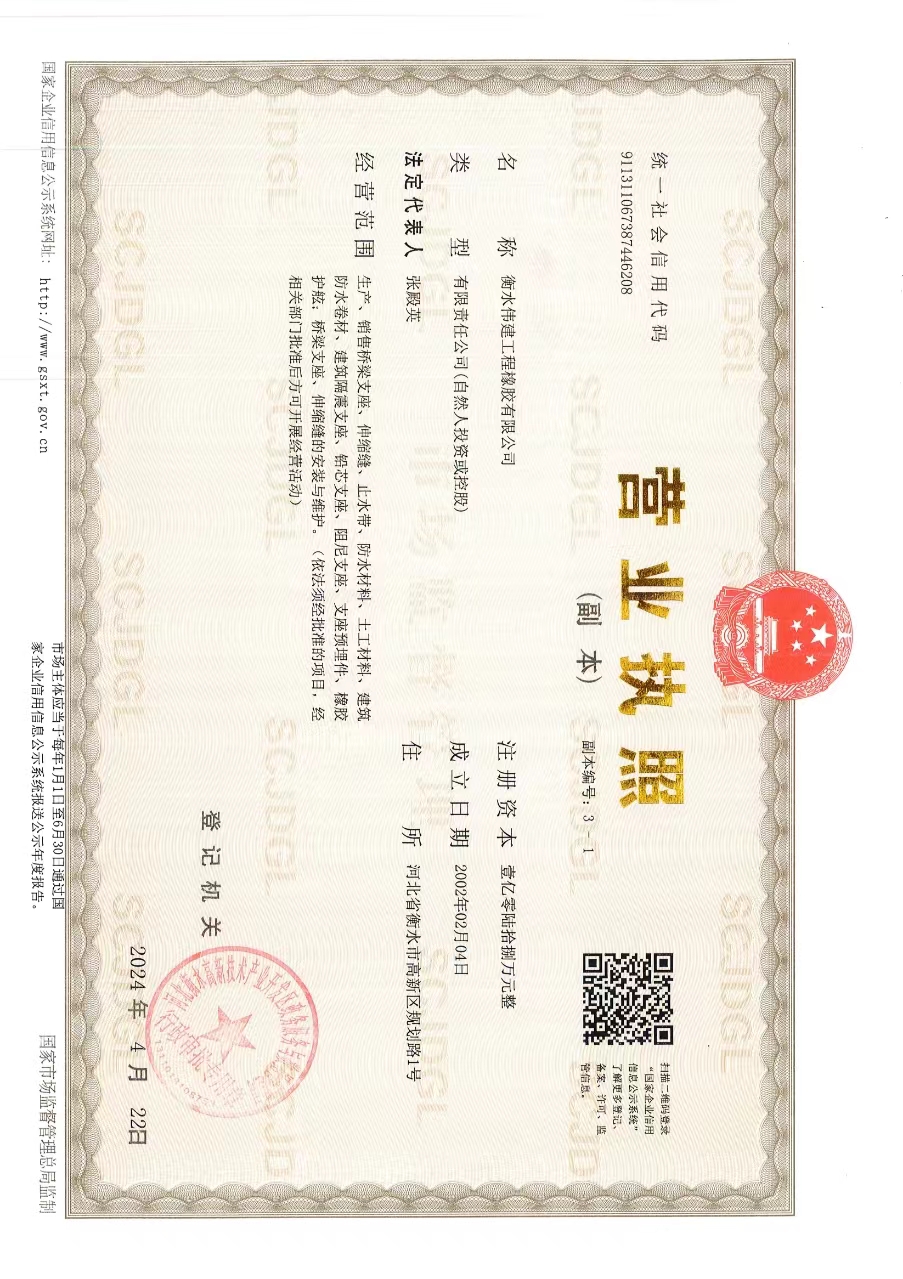 衡水偉建工程橡膠有限公司位于河北省衡水市高新區(qū)規(guī)劃路1號(hào),成立于2002年,占地面積二萬(wàn)六千平方米。